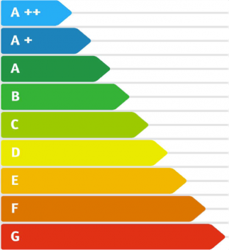 Der "Energieausweis" gibt Werte zur Gesamtenergieeffizienz eines Gebäudes an: den spezifischen Heizwärmebedarf, den Primärenergiebedarf, die Kohlendioxidemission und den Gesamtenergieeffizienzfaktor. Die Skala reicht jeweils von Klasse A++ bis Klasse G.