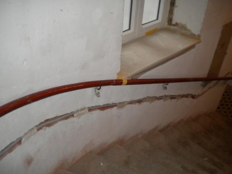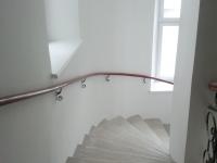 Im Eingangsbereich wurden neue Zählerkästen errichtet, der Fußbodenaufbau samt Belag erneuert und vor allem die Elektrik in Verbindung mit neuen Steigleitungen, eine abgehängte Decke inklusive SAT-Anlagenanschluss für die Wohneinheiten erforderten besondere Planungs- und Ausführungsarbeit.