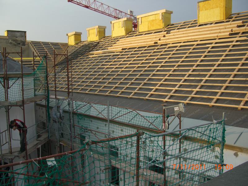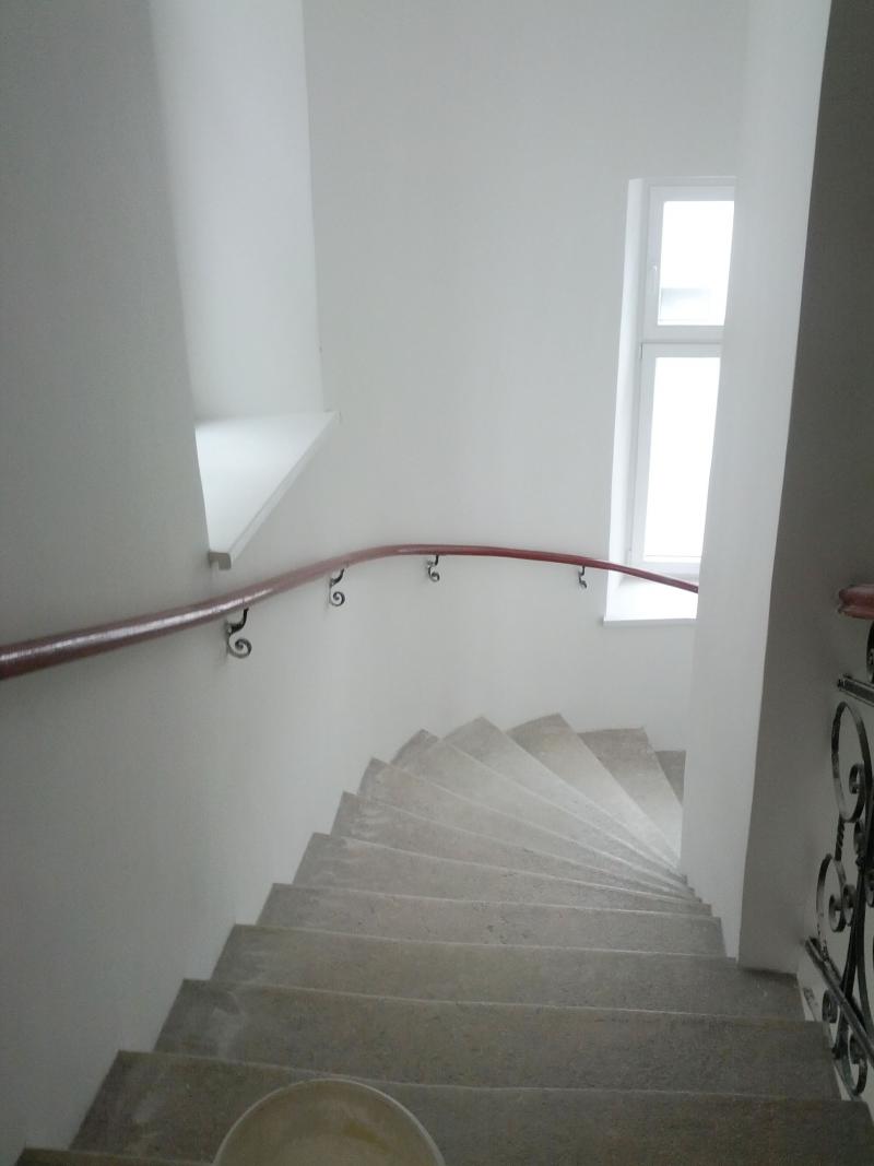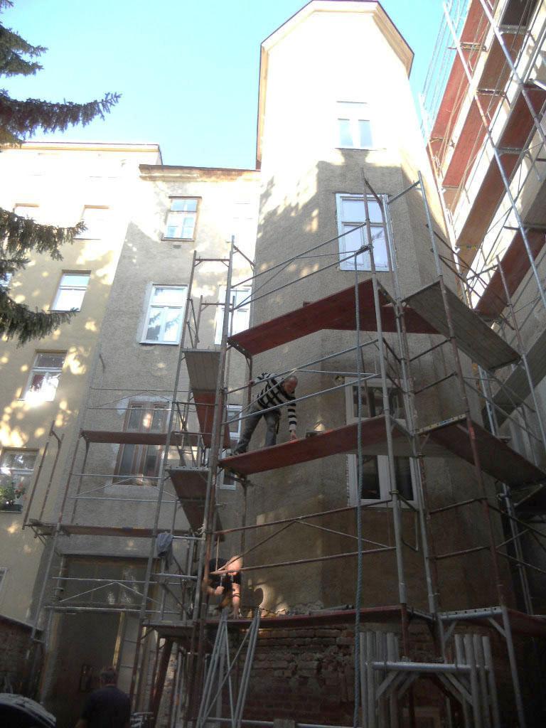 Im Zuge der Sanierung wurde das schadhafte Dach neu gedeckt, das Hofportal erneuerrt und in den Gängen ein neuer Anstrich inklusive Stockwerksbeschilderung hergestellt.