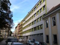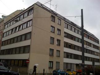Bei diesem Gebäude handelt es sich um einen Altbau aus den frühen 70-iger Jahren mit den für dieses Baujahr typischen Paneelwänden zwischen den Fenstern mit einem Erdgeschoss, 4 Stockwerken und einem ausgebauten Dachgeschoss. Das Gebäude ist voll unterkellert. Es handelt sich um ein Eckgebäude, wobei im Erdgeschoss in der Kranzgasse eine Garage für ca. 6 PKW untergebracht ist.